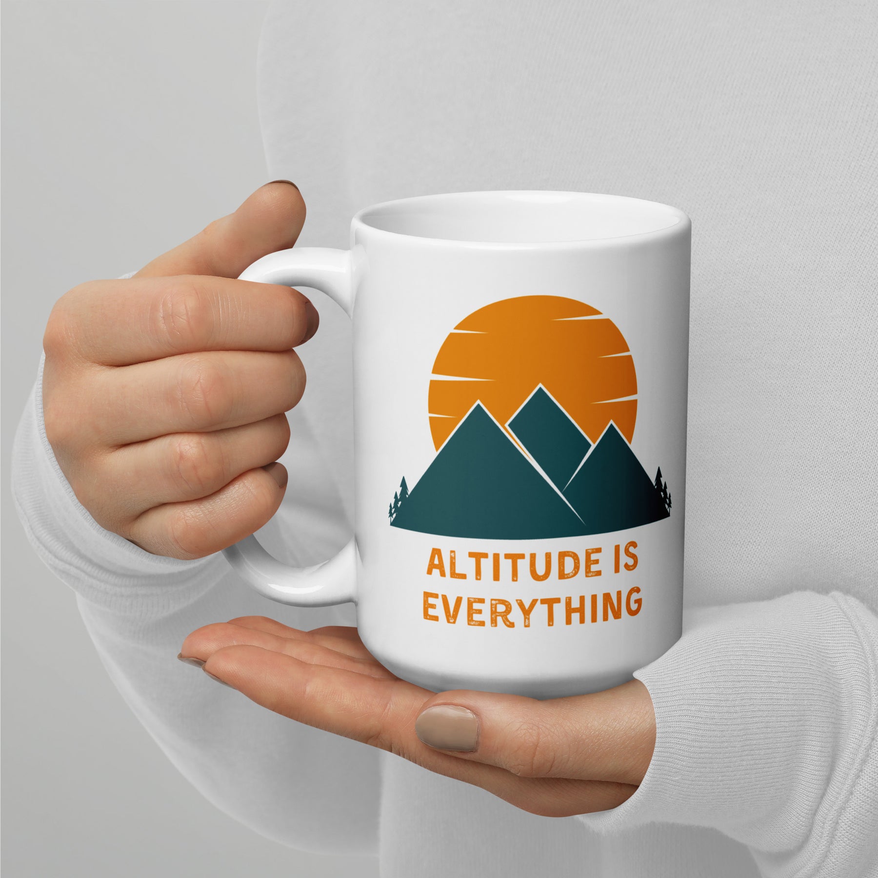 For those who thrive in the thin air, our 'Altitude is Everything' ceramic mug