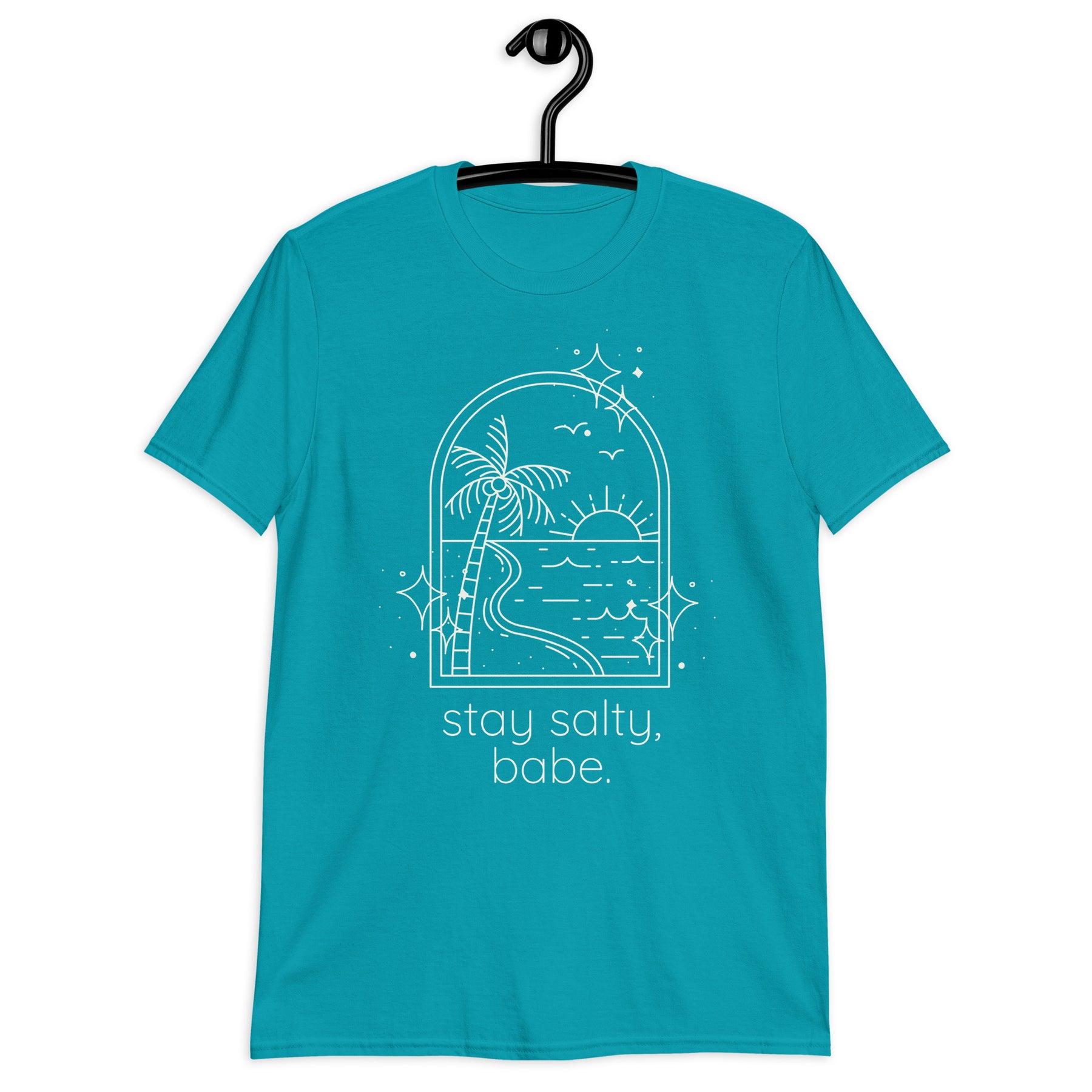 Hanging tropical blue graphic tee that reads "stay salty babe" from Jade Street Market